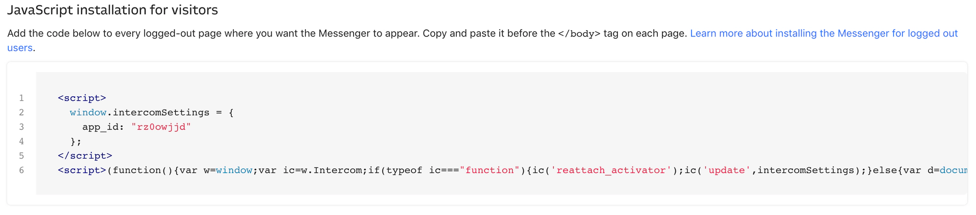 Copy the Intercom installation code